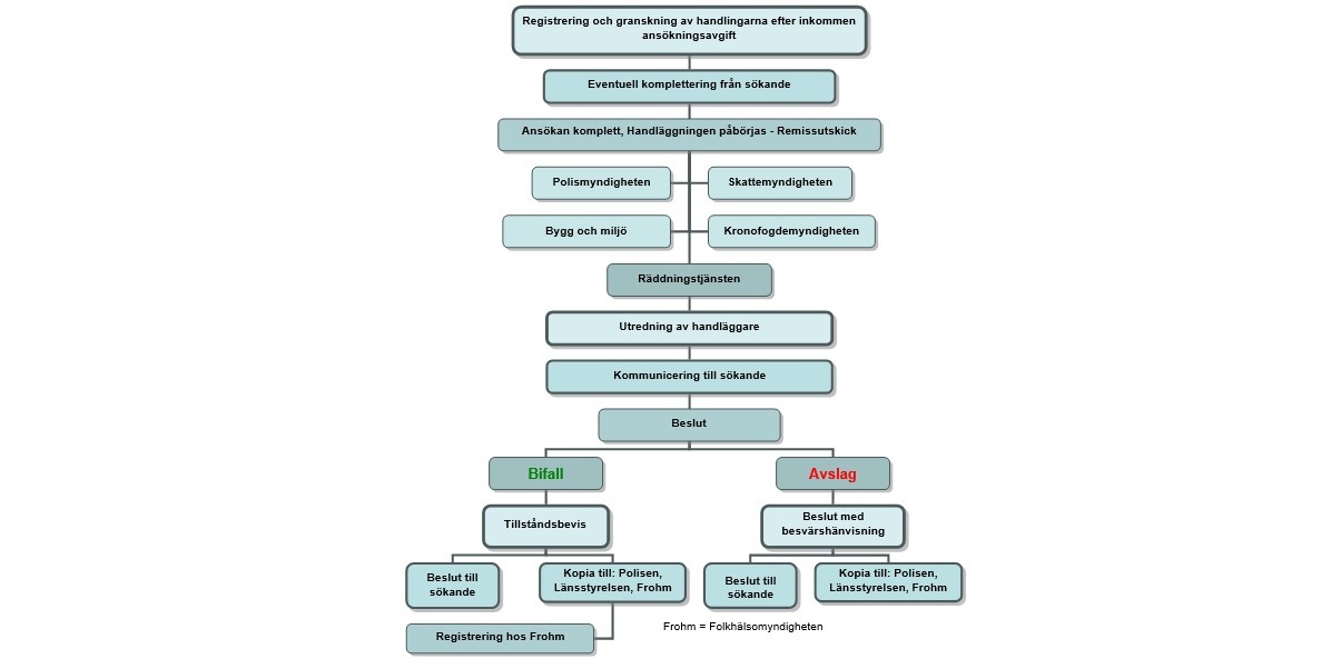 Bilden visas hur handläggningen av tillstånd gällande servering till allmänheten handläggs.