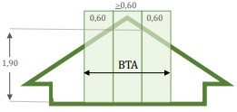 Vid snedtak gäller att allt som har mer än 1,90 meter i takhöjd räknas plus den totala golvyta som sträcker sig 60 centimeter utåt från den punkt där takhöjden går under 1,90 meter.